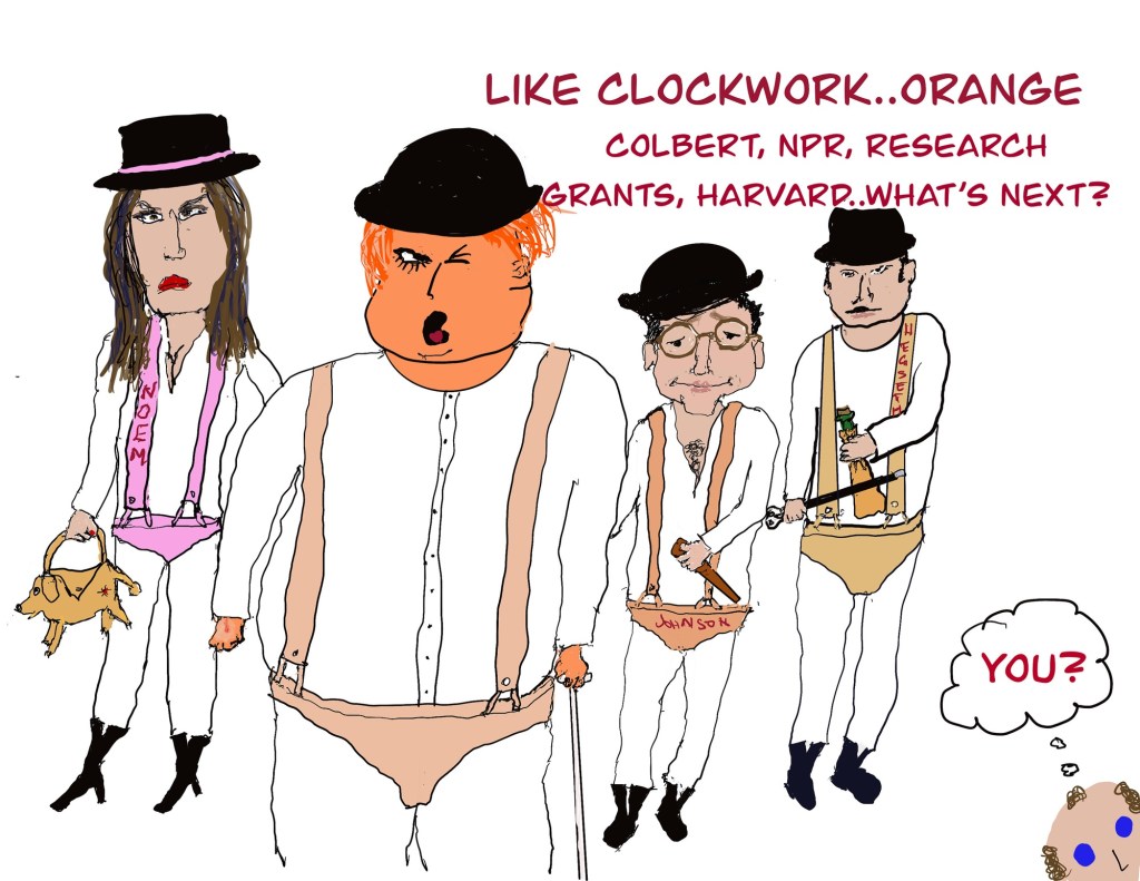 25th Amendment, congress, corruption, epstein, harvard, impeachment, kristi noem, Mike johnson, NPR, Pete Hegseth, political cartoon, research grants, stephen colbert, Trump